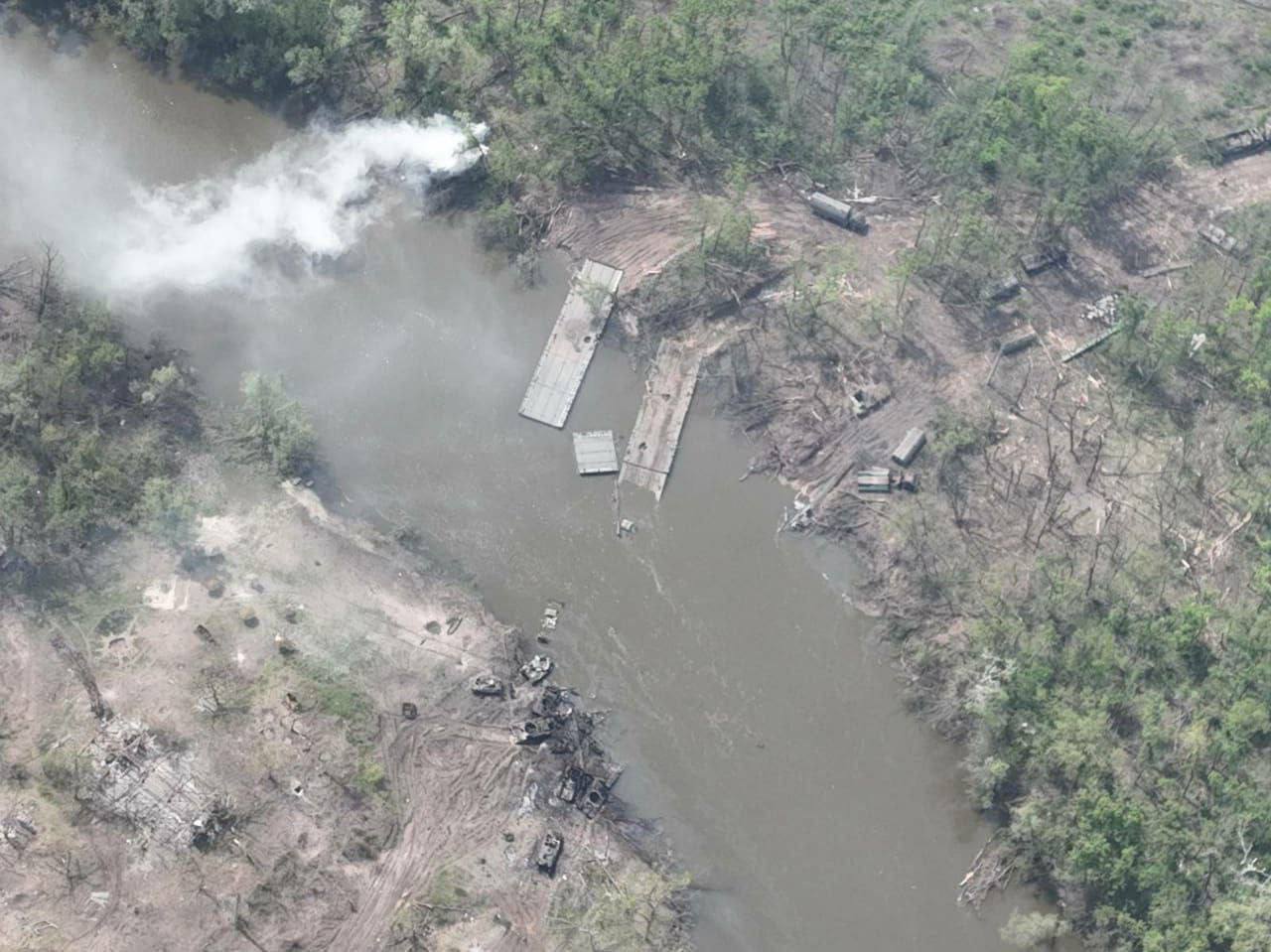 00.13 Украинское командование публикует фото разбитой российской переправы через Северский Донец около села Белогоровка в Луганской области, за которое уже несколько недель ведутся ожесточённые бои. Армия РФ пытается выйти на трассу Бахмут-Лисичанск.
