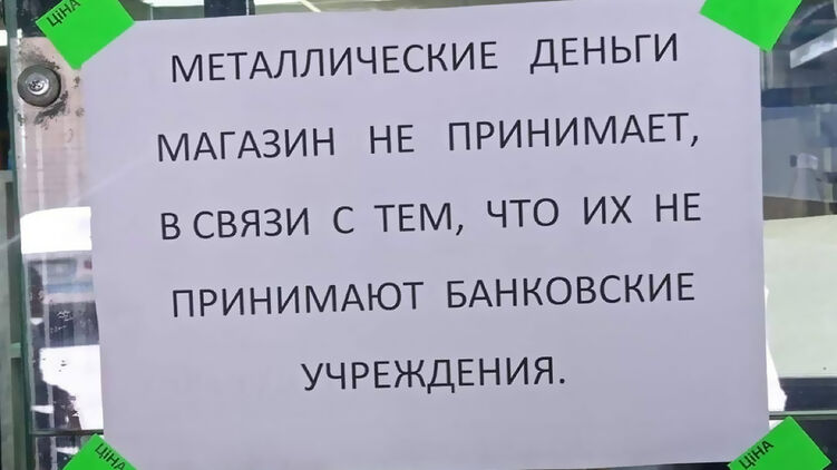 В Херсоне отказываются принимать железные монеты. Оплатить товар можно только бумажной купюрой. Фото