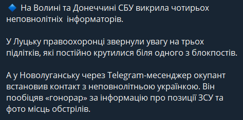 На Донбассе и Волыни Служба безопасности Украины разоблачила четырех "несовершеннолетних информаторов".