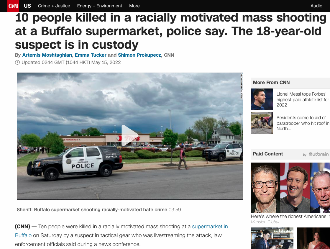 В американском Буффало, штат Нью-Йорк, 18-летний парень устроил стрельбу в оживленном супермаркете и транслировал это в прямом эфире. Десять человек погибли и еще 13 получили ранения.