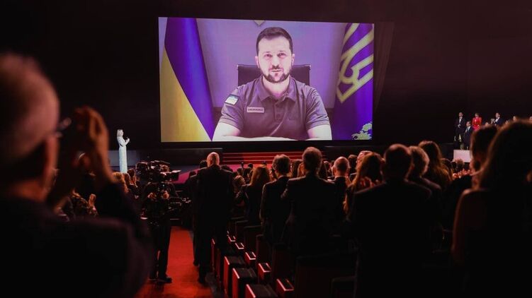 "И пока люди умирают, свобода никогда не погибнет", - добавил Зеленский, появившись на фестивале по спутниковой связи в своей теперь уже фирменной зеленой рубашке в стиле милитари и получил аплодисменты толпы, собравшейся на Французской Ривьере.