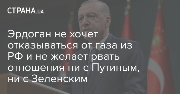 Эрдоган не хочет отказываться от газа из РФ и не желает рвать отношения ни с Путиным, ни с Зеленским