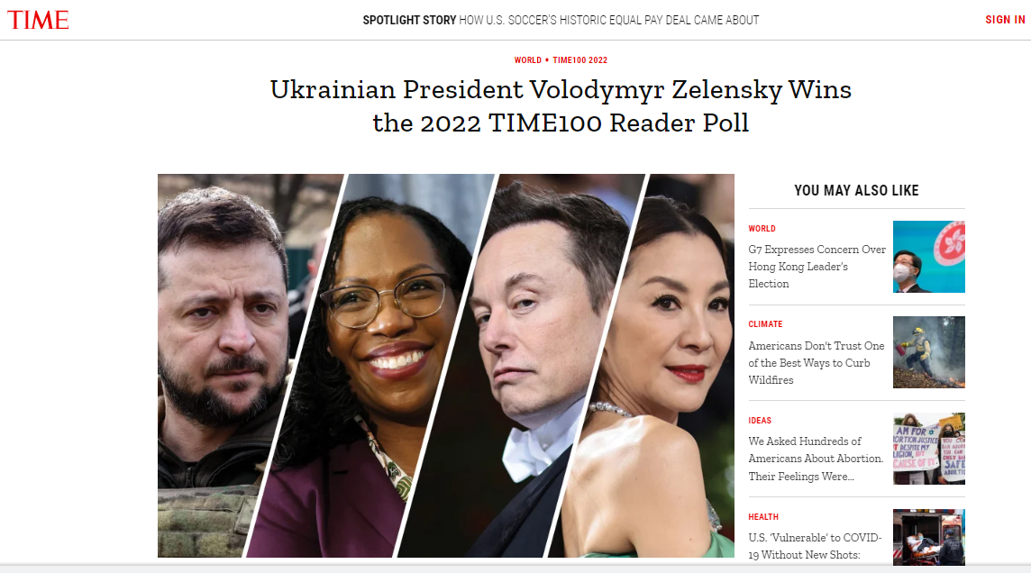 В рамках опроса читатели голосовали за людей, которые, по их мнению, заслуживают место в ежегодном списке самых влиятельных людей года по версии Time.