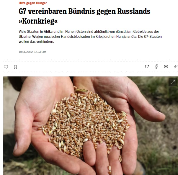 Издание "Шпигель" подмечает интересный нюанс: по сути "Большая семерка" пытается дублировать продовольственную программу ООН, которая имеет международный мандат (и куда входят страны, рискующие ощутить голод, в отличие от G7).