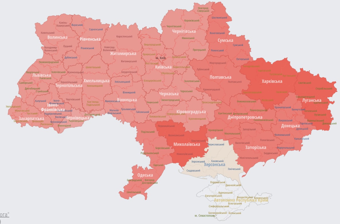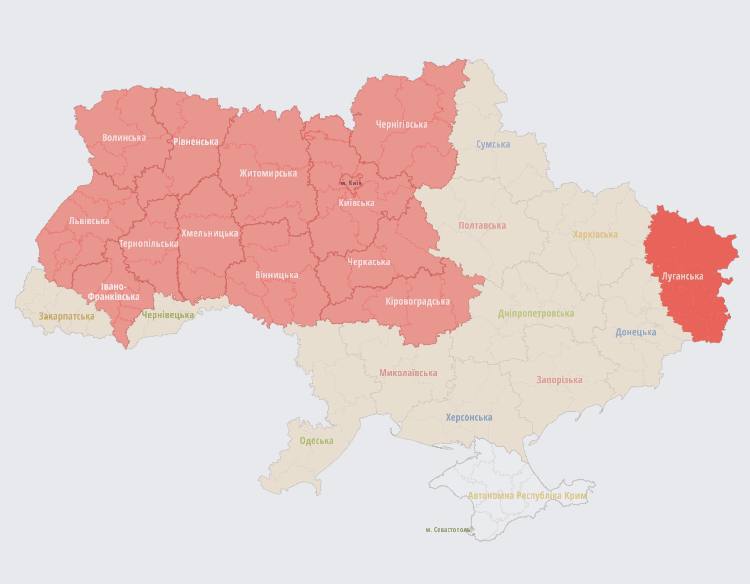 08:46 Карта воздушной тревоги сейчас выглядит так.