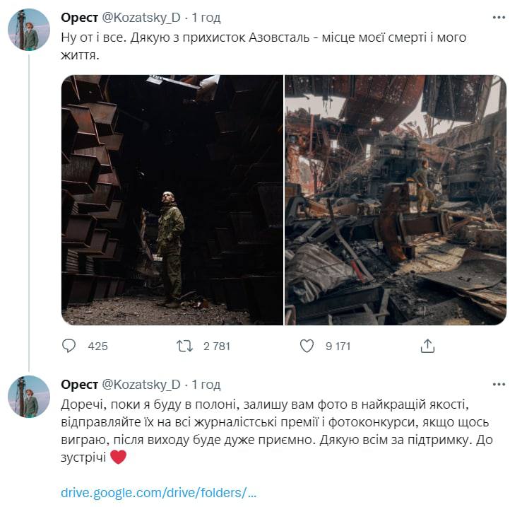 20.29 Российская журналистка Ирина Куксенкова сообщает, что из "Азовстали" вышел командир "Азова" Денис Прокопенко.
