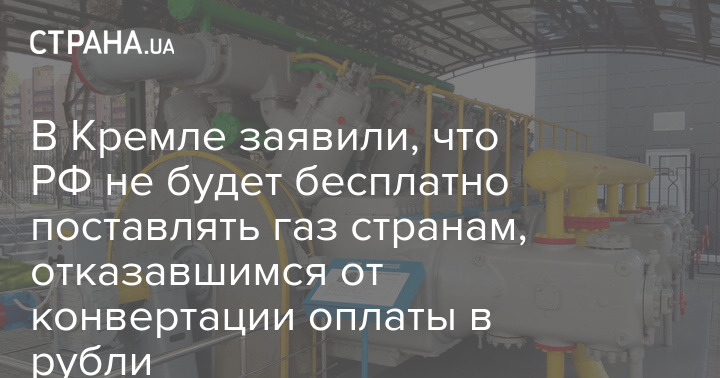 В Кремле заявили, что Россия не будет бесплатно поставлять газ в страны, которые отказались от перехода на новую схему оплаты с конвертацией платежа в рубли. Об этом со ссылкой на пресс-секретаря президента РФ Дмитрия Пескова сообщают российские СМИ.
