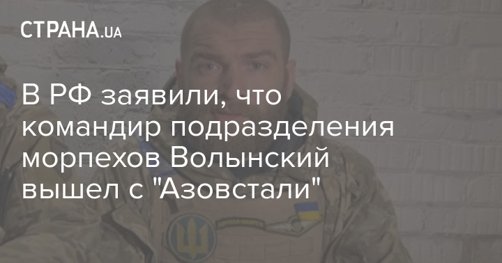 Командир подразделения 36-й бригады морской пехоты ВСУ Сергей Волынский ("Волына"), который призывал мировых лидеров спасти защитников Мариуполя, вышел с "Азовстали". Об этом заявила корреспондент российского Первого канала Ирина Куксенкова.