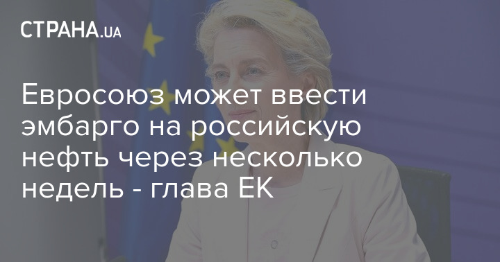 Президент Еврокомиссии Урсула фон дер Ляйен заявила, что европейское эмбарго на российскую нефть – это вопрос нескольких недель.