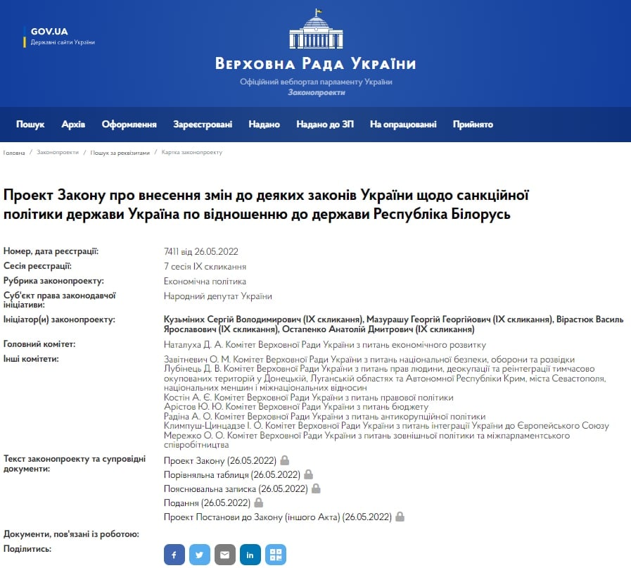 Авторы законопроекта предлагают внести изменения в закон  "Об основных принципах принудительного изъятия в Украине объектов права собственности Российской Федерации и его резидентов" от 3 марта, добавив в него Беларусь.