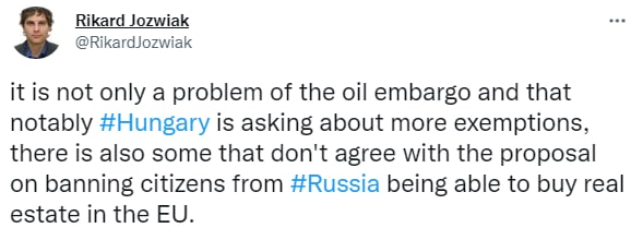 По его информации, также некоторые страны не согласны с  запретом гражданам России покупать недвижимость в ЕС. Отметим, что ранее против этого выступал Кипр.