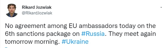 Также Йозвяк подтверждает, что страны соберутся на новый раунд переговоров завтра утром.