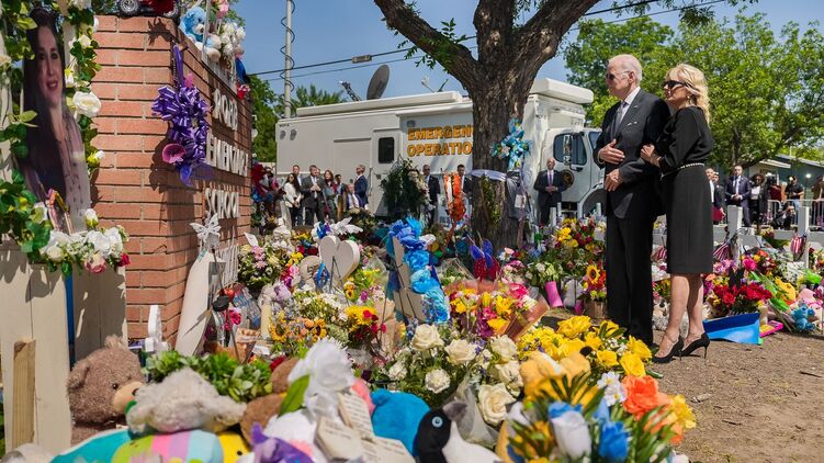 Байден с женой на стихийном мемориале у школы. Фото: facebook.com/WhiteHouse