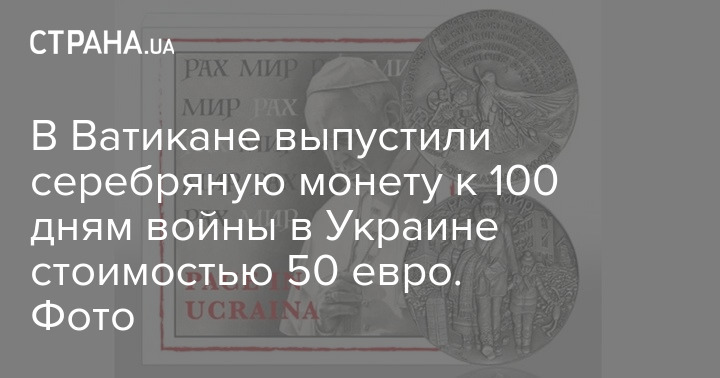 В Ватикане к 100 дням войны в Украине выпустили серебряную монету, посвященную Украине, всю прибыль от продажи которой используют на помощь нашей стране. Об этом сообщил посол Украины в Ватикане Андрей Юраш в Facebook.