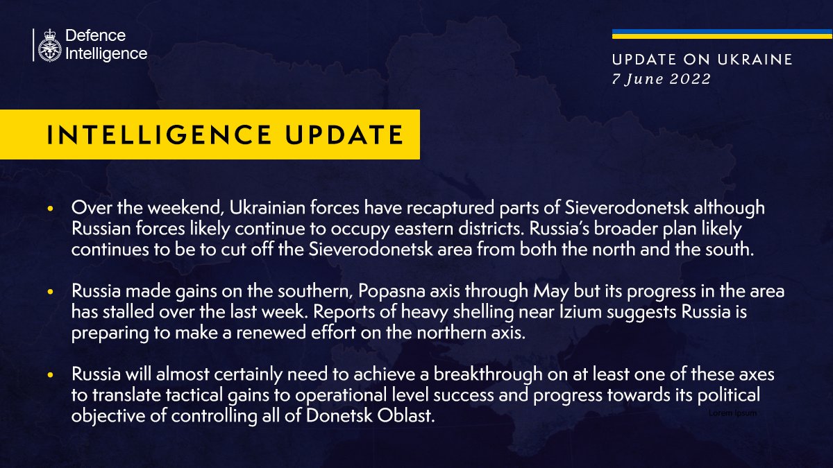 План РФ по-прежнему заключается в том, чтобы отрезать район Северодонецка как с севера, так и с юга.