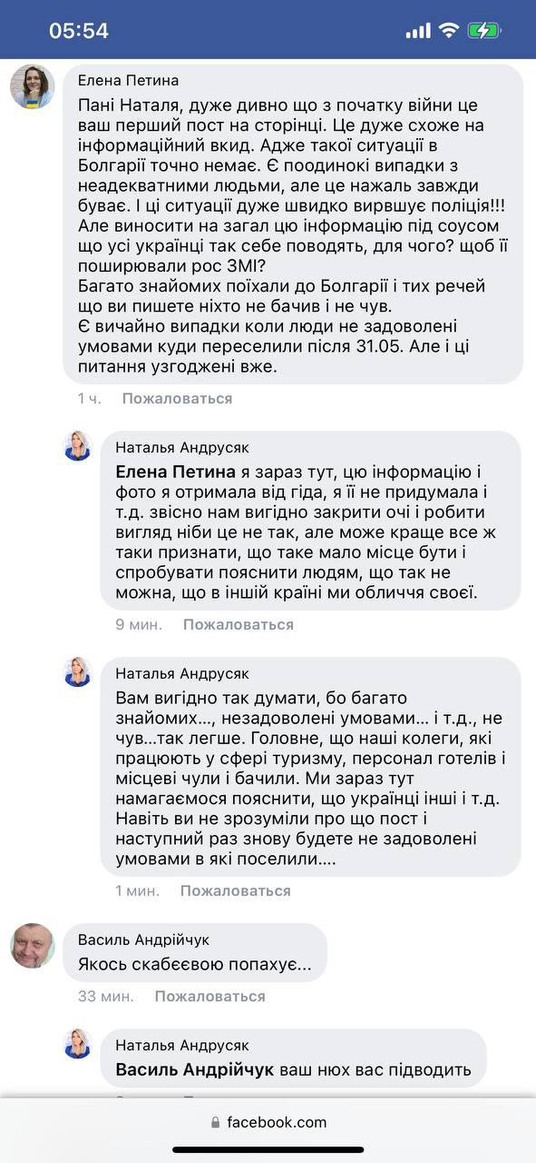 10:26 В болгарских гостиницах отношение к украинцам сильно ухудшилось после того, как в них жили украинские беженцы, пишет турагент из Черновцов Наталья Андрусяк в Facebook, которая посетила Болгарию.