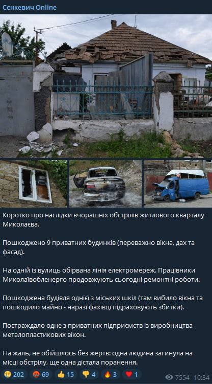 10:57 В Николаеве из-за вчерашних обстрелов погиб человек. Еще один ранен, сообщает глава Николаева Александр Сенкевич