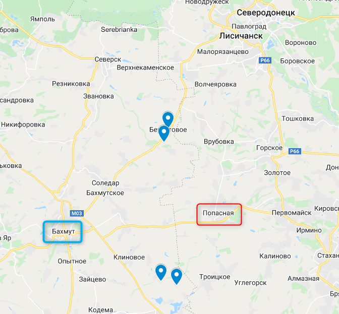 На бахмутском направлении украинские войска, как заявляет Генштаб ВСУ, отбили атаки на села Нагорное, Берестовое (на трассе Лисичанск-Бахмут) Криничное и Роты (по пути их Светлодарска на Бахмут).