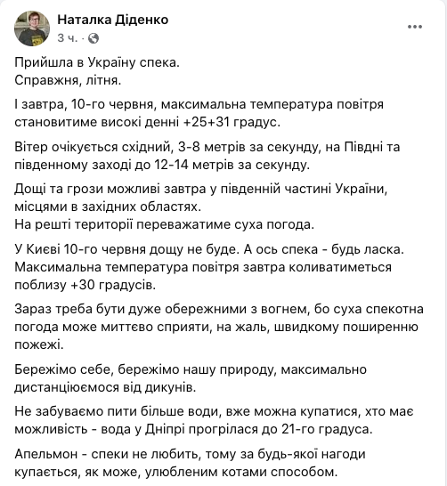 Из-за такой жары вода в Днепре уже прогрелась до 21 градуса, так что можно купаться.