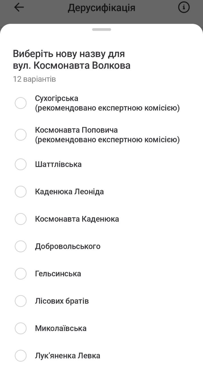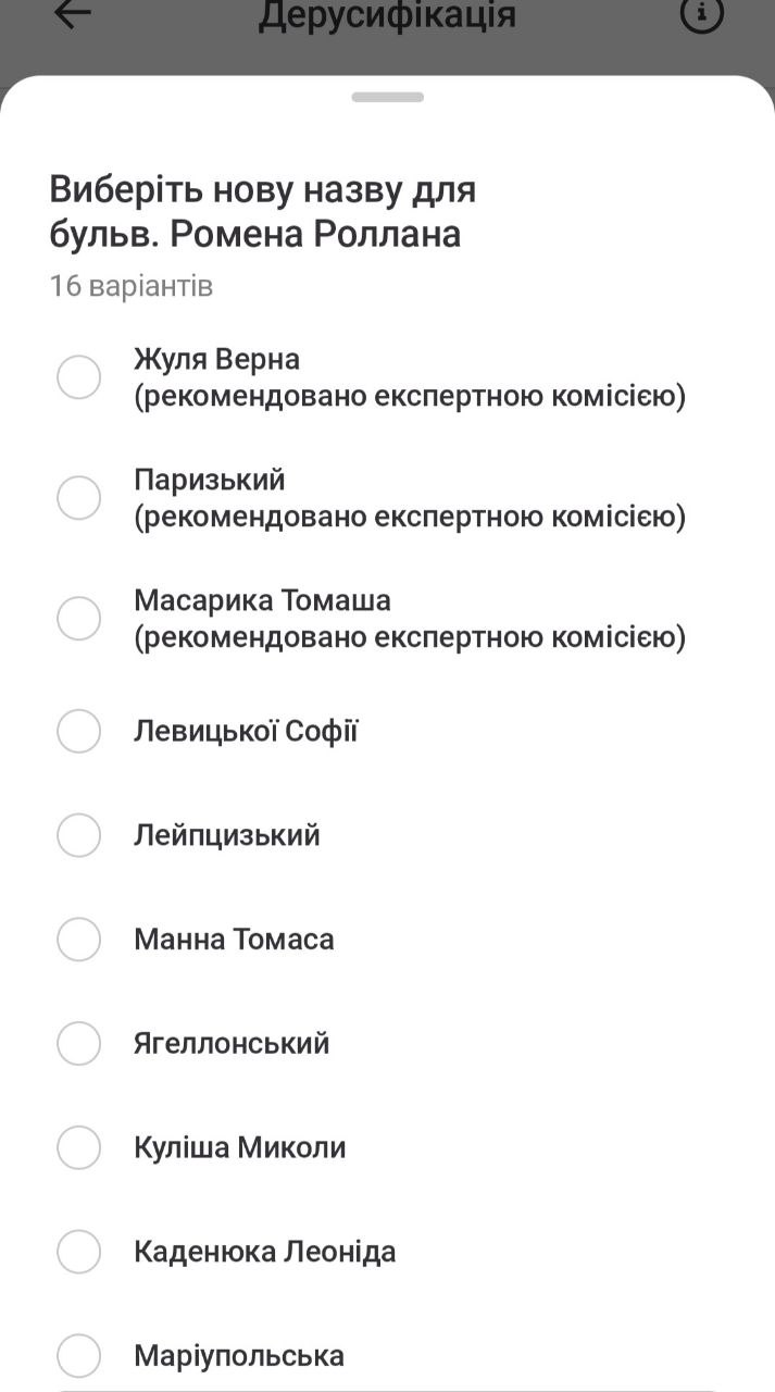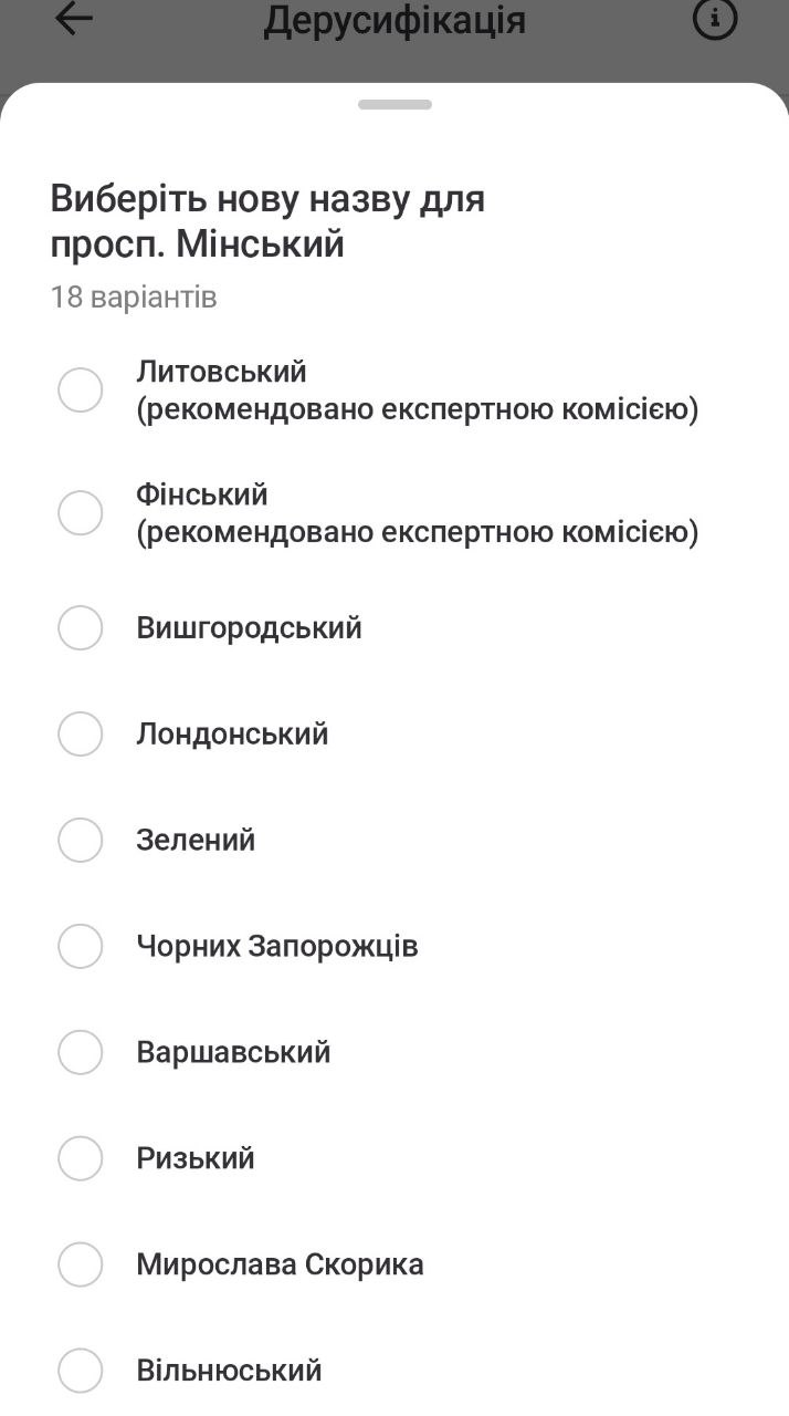 Всего в голосовании предложили 21 вариант вместо Маршала Малиновского. Среди них есть названия в честь американского генерала Дуайта Эйзенхауэра, украинского анархиста Нестора Махно, казака Самийла Кишки.