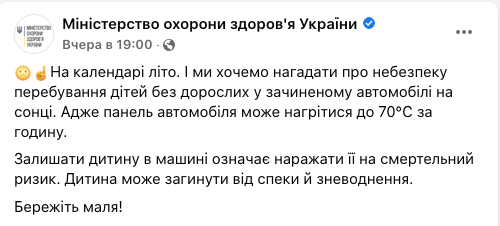 Наступило жаркое лето и медики напоминают украинцам об опасности нахождения детей без взрослых в закрытом автомобиле на солнце. Панель автомобиля может за час нагреться до +70.
