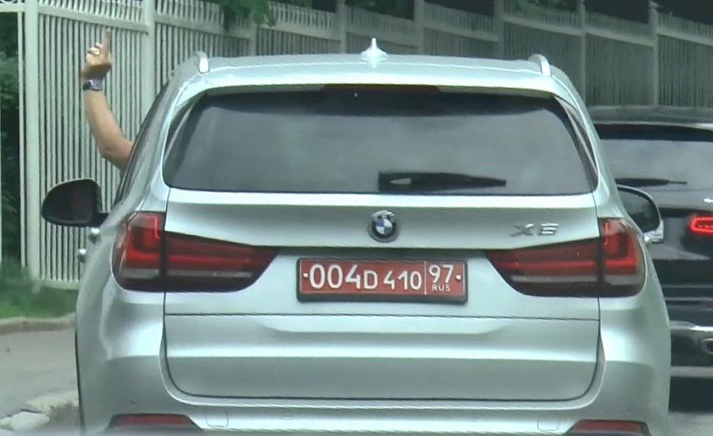 Когда он понял, что его снимают, то сел в авто и показал средний палец уже в камеру.
