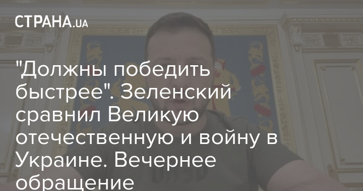 В своем традиционном вечернем видеообращении он сказал, что тогда с начала войны до победы прошло 1418 дней, а в этот раз мы должны пройти этот путь быстрее.