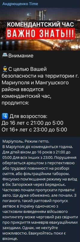 Ранее мы писали, что позавчера большие колонны российской техники выдвинулись из Мариуполя в направлении Бердянск – Пологи. По словам советника мэра города, большинство находившихся в Мариуполе военных РФ перебрасывают на другие участки фронта в Запорожскую область. В связи с уменьшением числа военных в городе ослаблен контроль передвижения: для него теперь  используются мобильные группы, внезапно появляющиеся в разных районах Мариуполя.