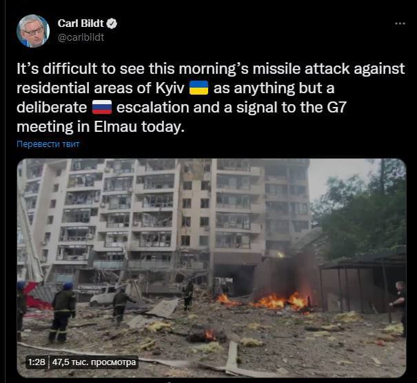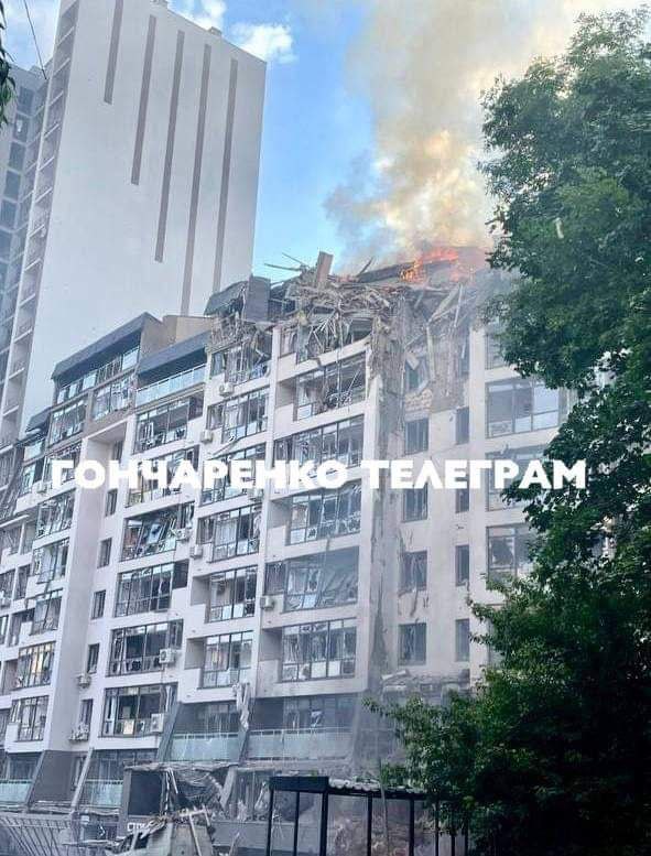 8.00 Советник главы МВД Антон Геращенко подтвердил, что ракетой снесло несколько верхних этажей 9-этажного дома в Шевченковском районе Киева.