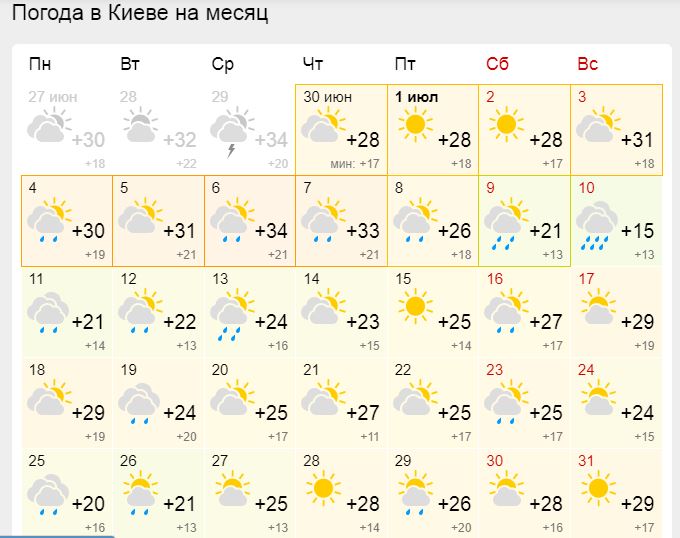 Прогноз погоды на июль 2022 в Киеве от Gismeteo