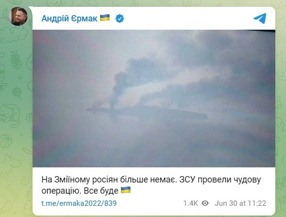 Глава Офиса президента Андрей Ермак также подтверждает отход россиян с острова Змеиный.