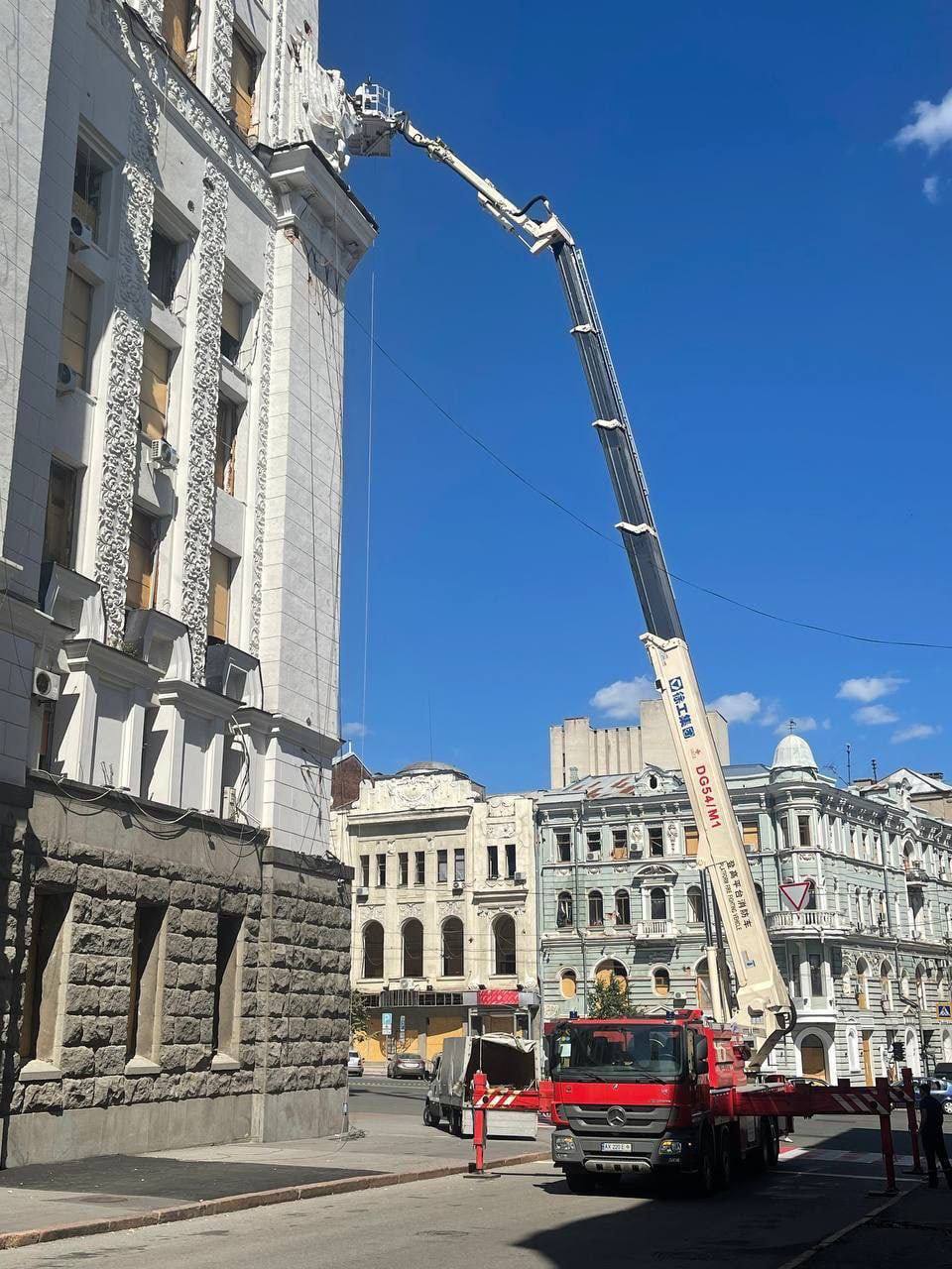В Харькове демонтируют советский герб со здания горсовета. Фото