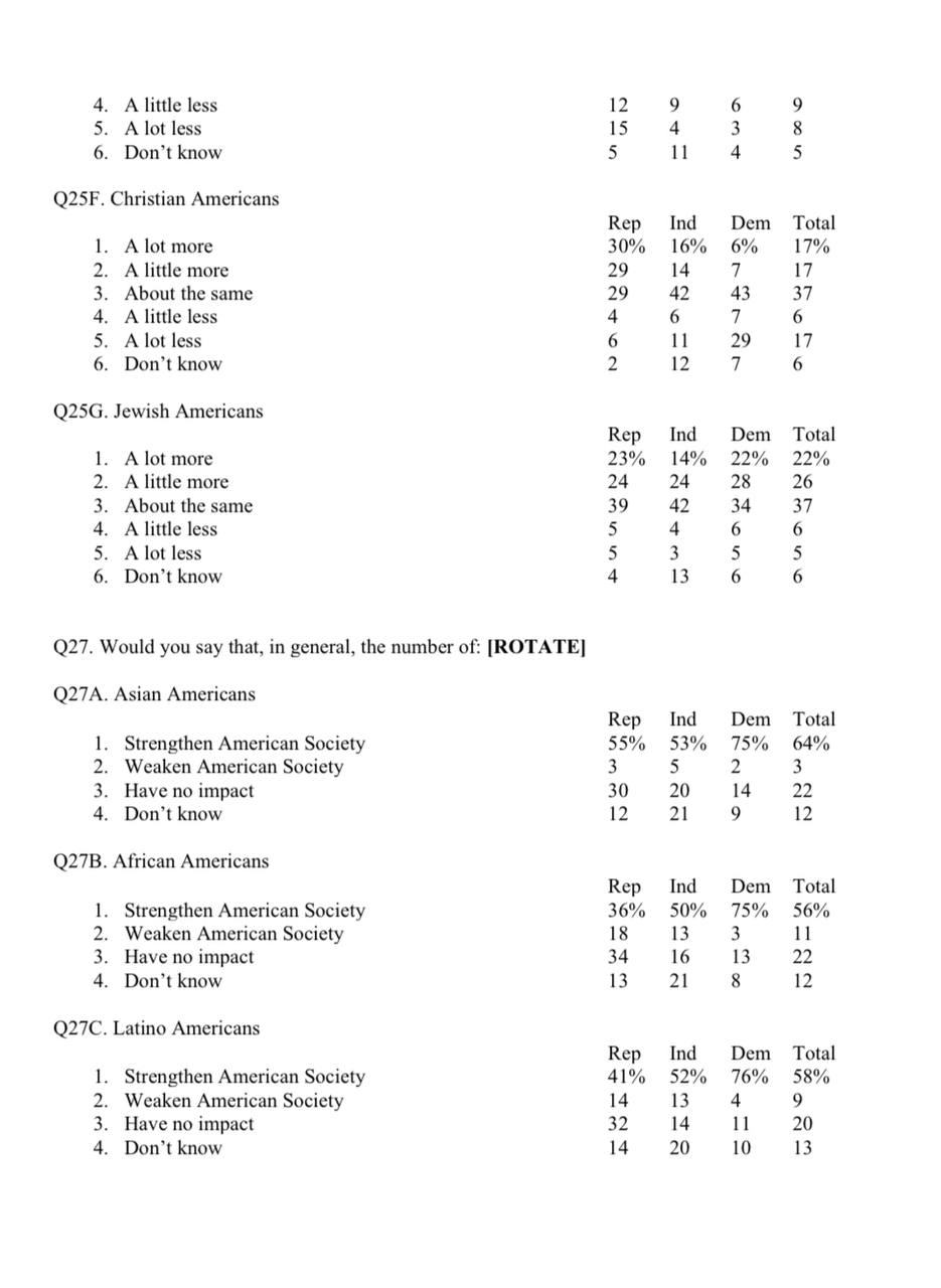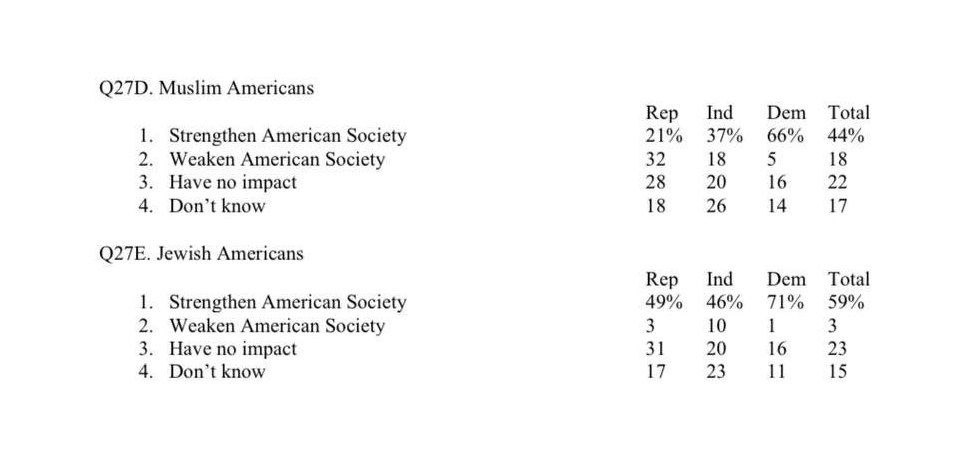 Для сравнения, среди афроамериканцев 53,2% отметили значительный рост дискриминации против представителей своей группы, 38,9% - против азиатского, 33,3% - против латиноамериканцев, 29,3% - против мусульман и 23,7% - против евреев. И 13% афроамериканцев считают, что белое население в США столкнулось со значительным ростом дискриминации за последние пять лет.