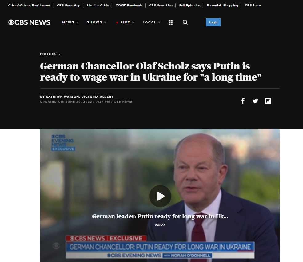 На вопрос о том, когда у Путина иссякнет ресурс на продолжение войны Шольц ответил, что "на самом деле никто не знает". Однако длительное планирование, по словам канцлера, свидетельствует о том, что российский президент готов к длительной войне.