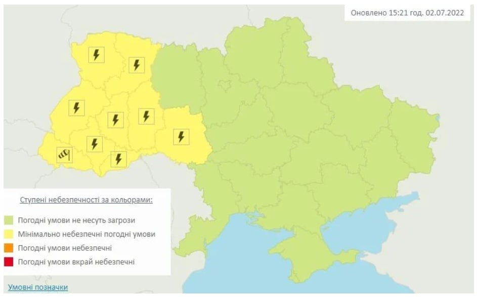 В субботу, 2 июля, в девяти областях Украины гидрометеорологический центр объявил штормовое предупреждение. Об этом говорится на сайте организации.