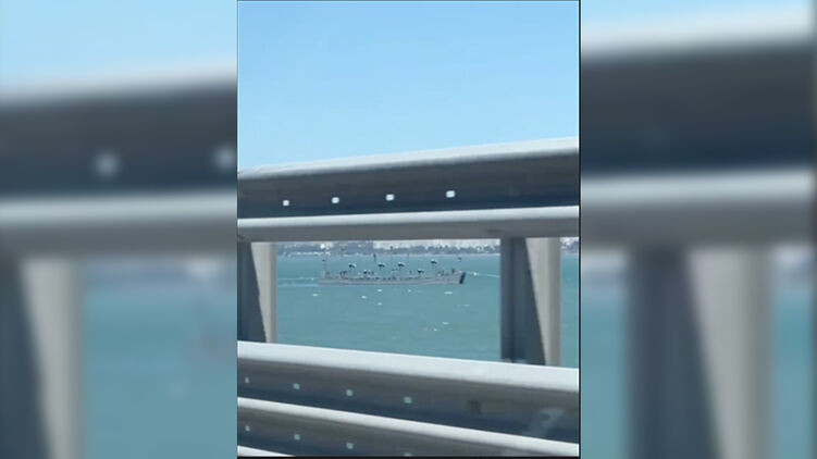 Соответствующее видео, снятое с моста, публикуют российские телеграм-каналы.
