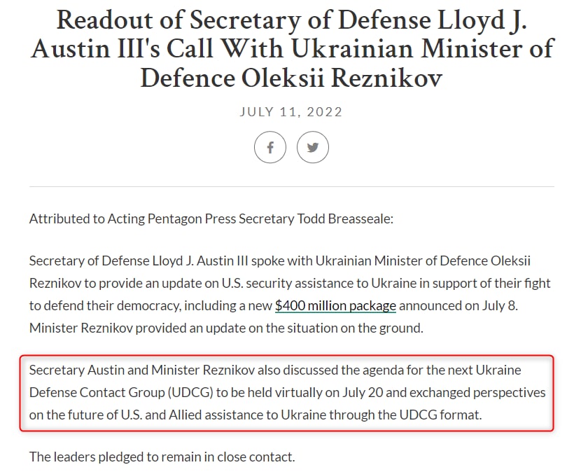 08:09 Четвертая встреча Контактной группы по Украине ("Рамштайн") состоится 20 июля в онлайн-формате.