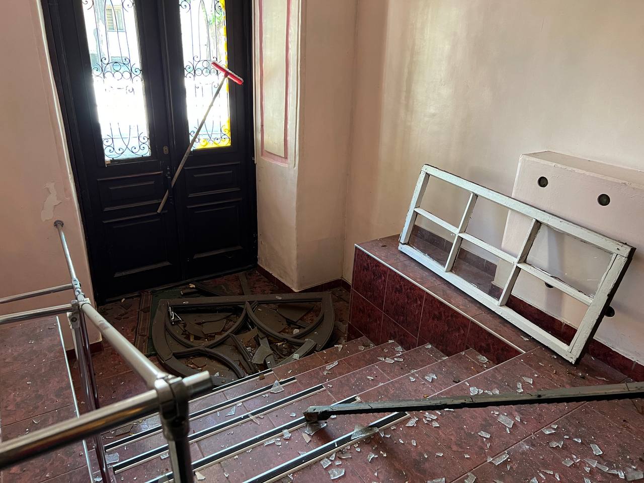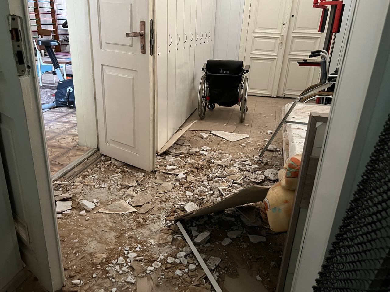 В зданиях выбиты окна, в некоторых помещениях упал потолок.