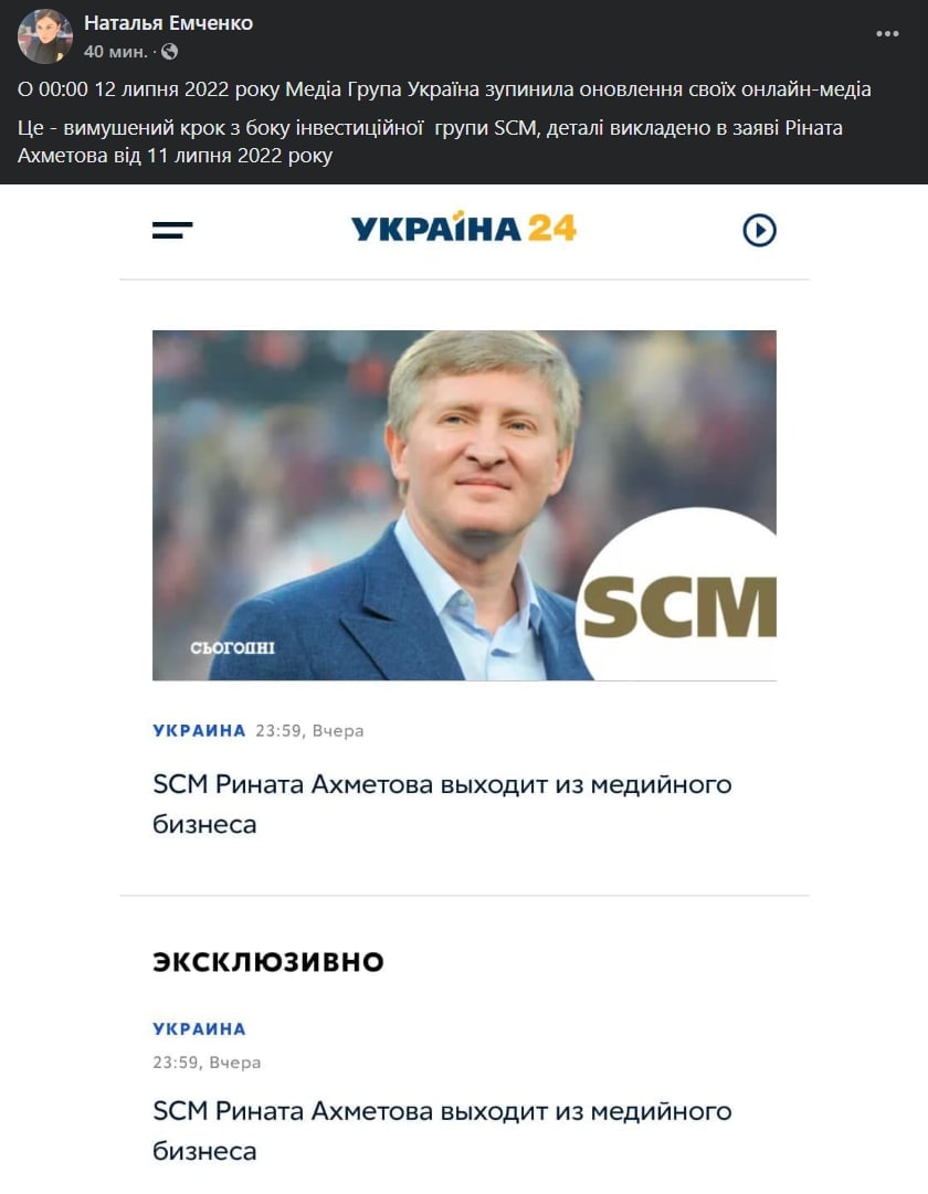 О причинах отказа Рината Ахметова от своих медиаактивов мы подробно рассказывали здесь.