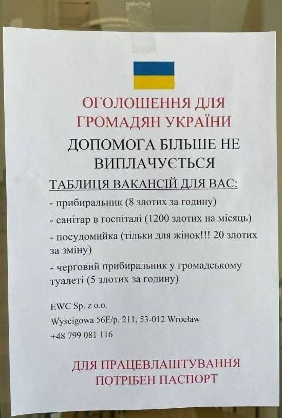 В Польше украинским беженцам сняли денежные пособия. Вначале власти гарантировали месячные выплаты в размере 1200 злотых (7,3 тыс. грн) на человека в течение первых двух месяцев, впоследствии их продлили еще на два месяца, а с 1 июля субсидии и вовсе отменили.