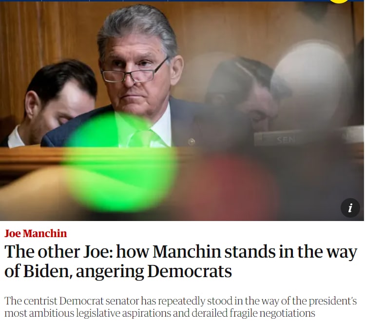 У Джо Байдена в рядах его собственных соронников-демократов завелся оппозиционер, выступающий против всех инициатив президента США в Конгрессе. Это сенатор от Западной Вирджинии Джо Манчин.