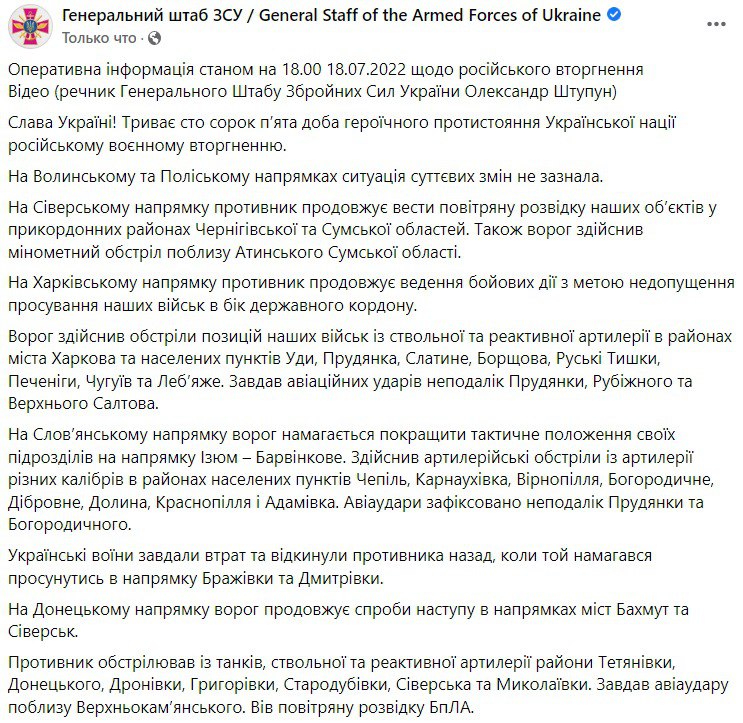 Война в Украине продолжается уже 145-й день. "Страна" следит за происходящим 18 июля в обновляемом материале