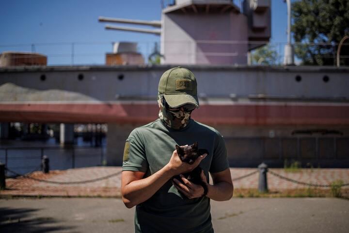 16:00 В соцсетях появилось фото кота, которого несколько дней назад привезли с острова Змеиный украинские военные.