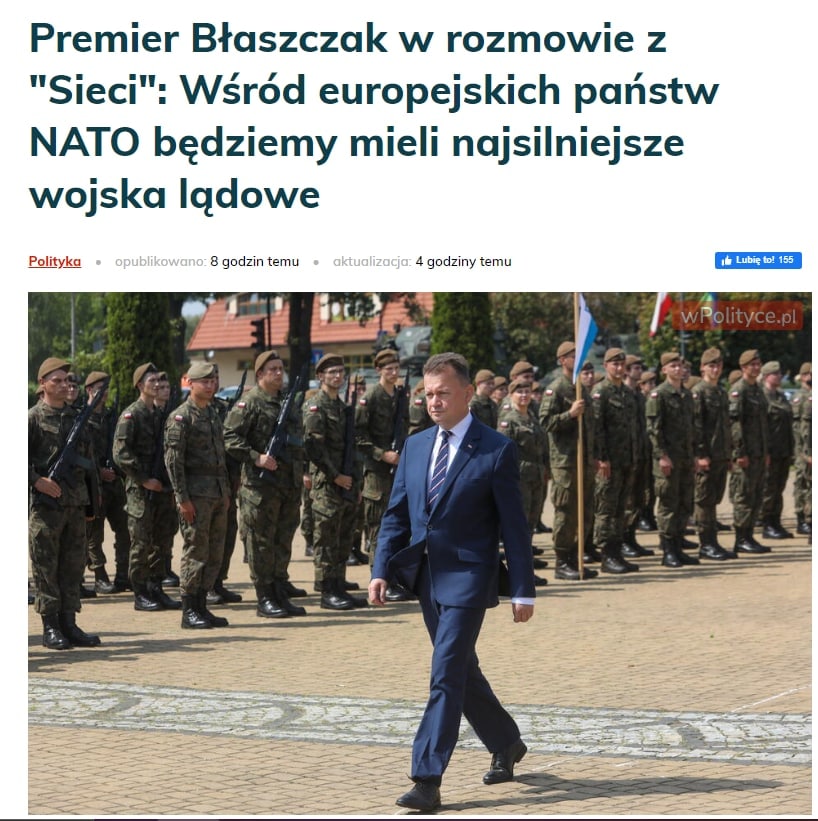 "Среди европейских стран НАТО у нас будут сильнейшие сухопутные войска. Мы находимся на линии фронта, у нас есть граница с Россией и на севере, и фактически в военном плане, со стороны Беларуси", - сказал Блащак.