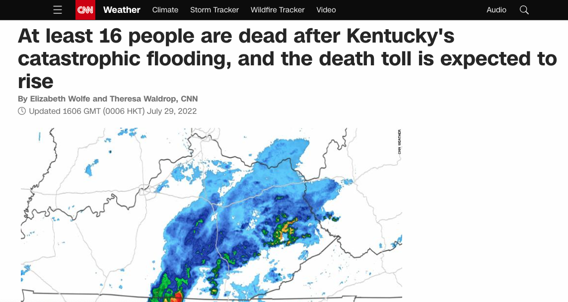 В штате Кентукки на юго-востоке США по меньшей мере 16 человек погибли в результате катастрофического наводнения. Введен режим чрезвычайной ситуации.