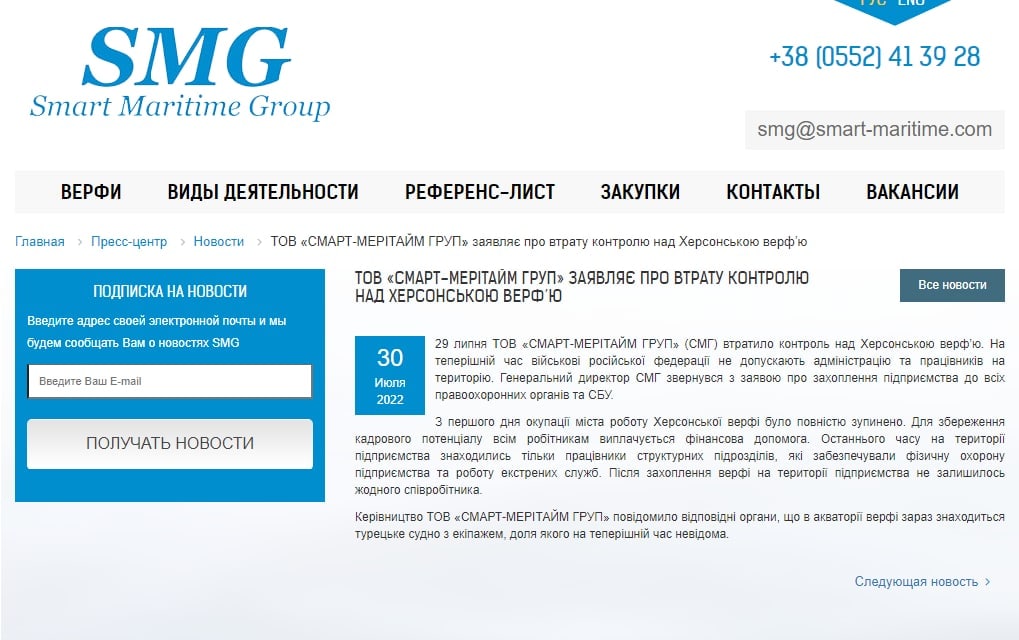 В оккупированном Херсоне россияне захватили верфь ООО "Смарт-Меритайм Груп", бенефициаром которой является экс-нардеп Вадим Новинский.