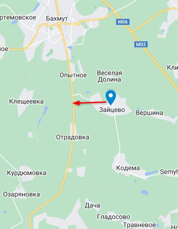 Институт изучения войны (США) считает, что главной тактической целью россиян к югу от Бахмута является контроль над Зайцево.