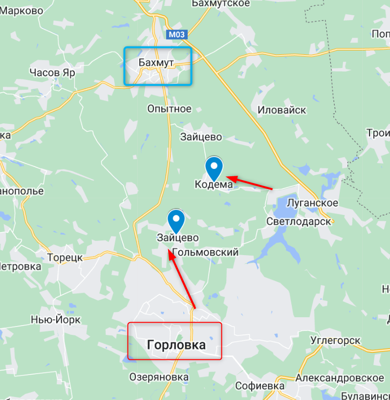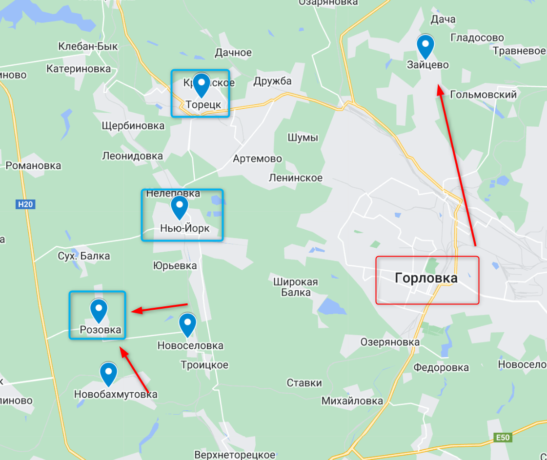 Есть сообщения и о том, что к западу от Горловки россияне начали атаку на Розовку (со стороны Новобахмутовки и Новоселовки). С учетом движения на Зайцево, не исключено, что мы видим попытку охвата Торецка и Нью-Йорка.