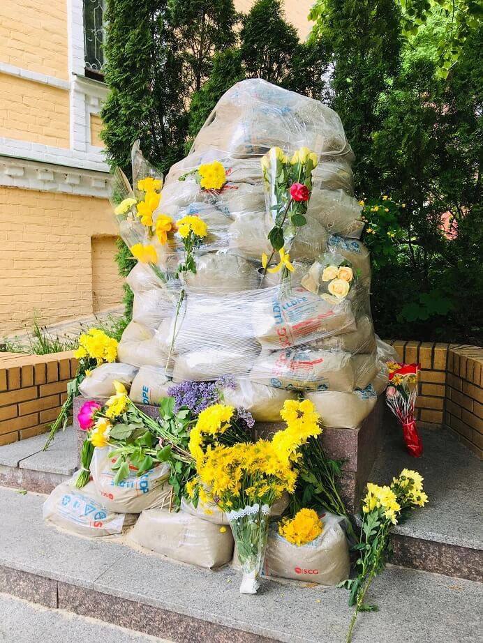 Против этого выступили многие киевляне, и с тех пор идею так и не внедрили. Хотя сейчас памятник все равно скрыт от глаз: как и многие другие, его укрыли от обстрелов. Но цветы продолжают приносить.