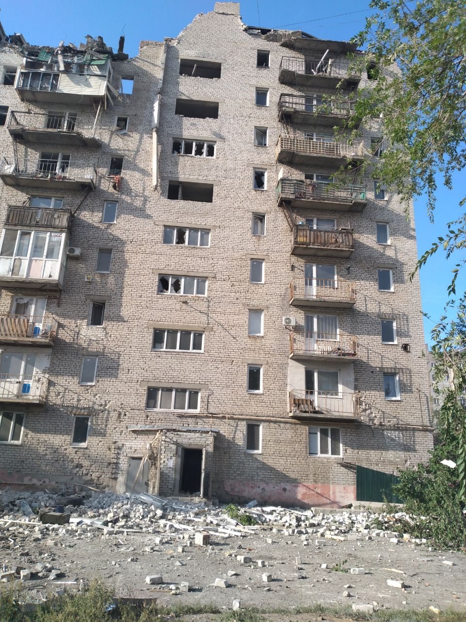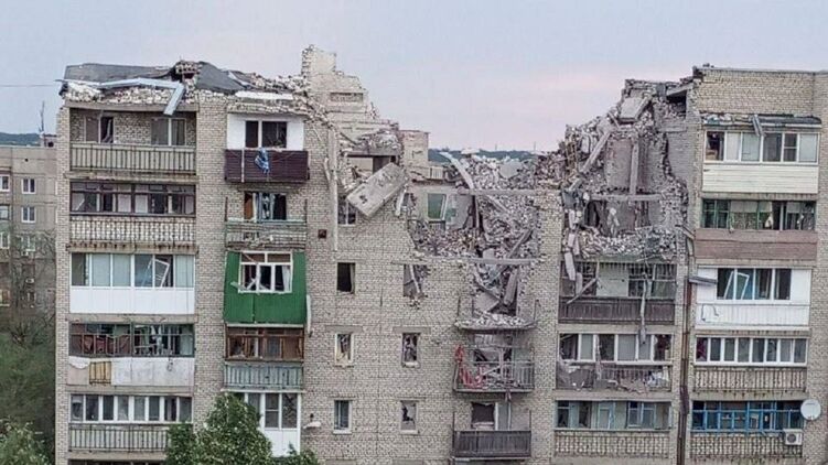 Также публикуют фото с места происшествия, на нем у девятиэтажного здания полностью разрушены верхние три этажа.